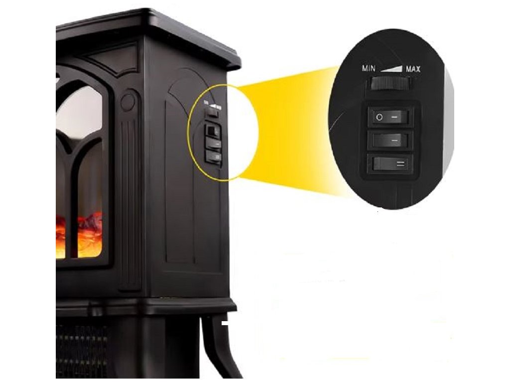 Tři rychlosti: efekt plamene / 900 W + efekt plamene / 1800 W + efekt plamene