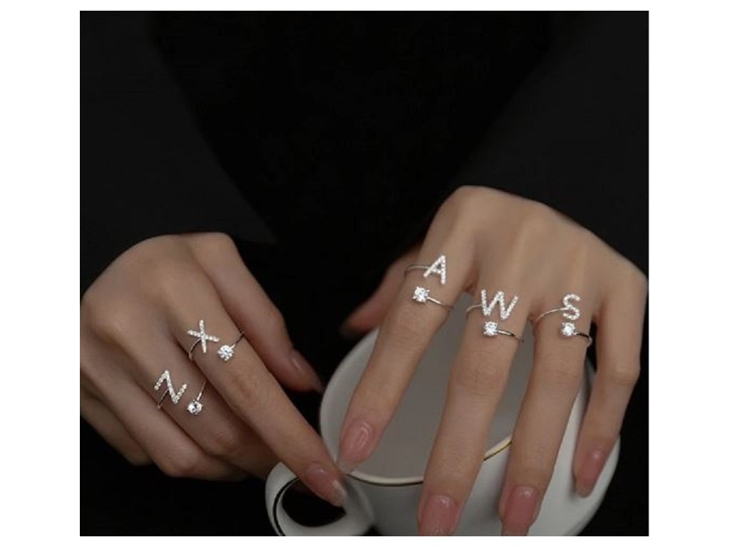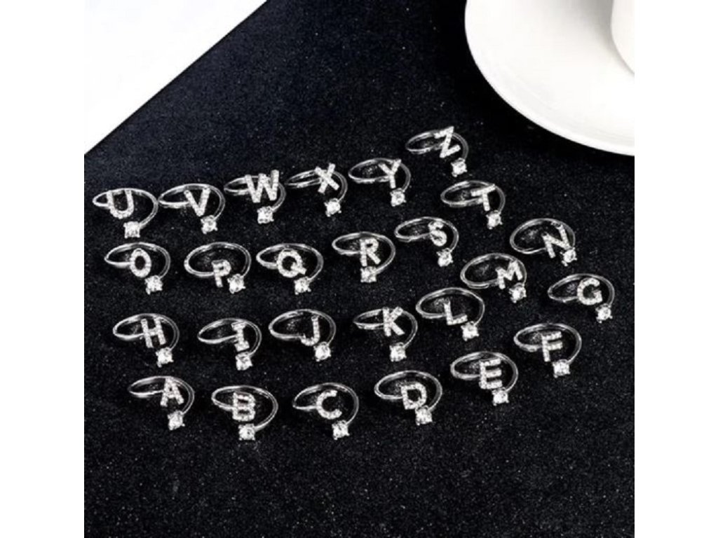 Nastavitelný prstýnek s písmenem a zirkony - SLEVA 62%