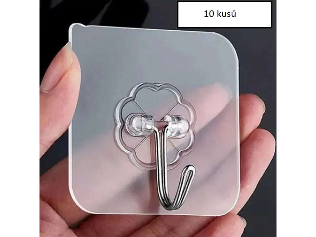 Samolepící průhledný háček - 10kusů - SLEVA 39%